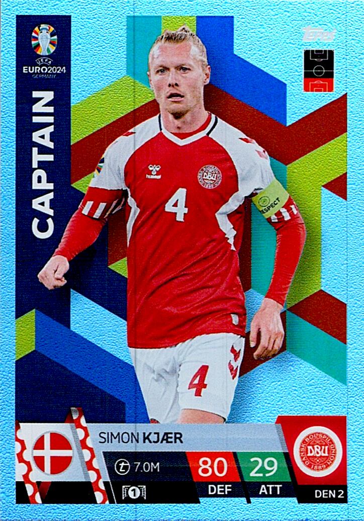 TOPPS MATCH ATTAX UEFA EURO 2024 SIMON KJAER DINAMARCA NºDEN2 CAPTAIN