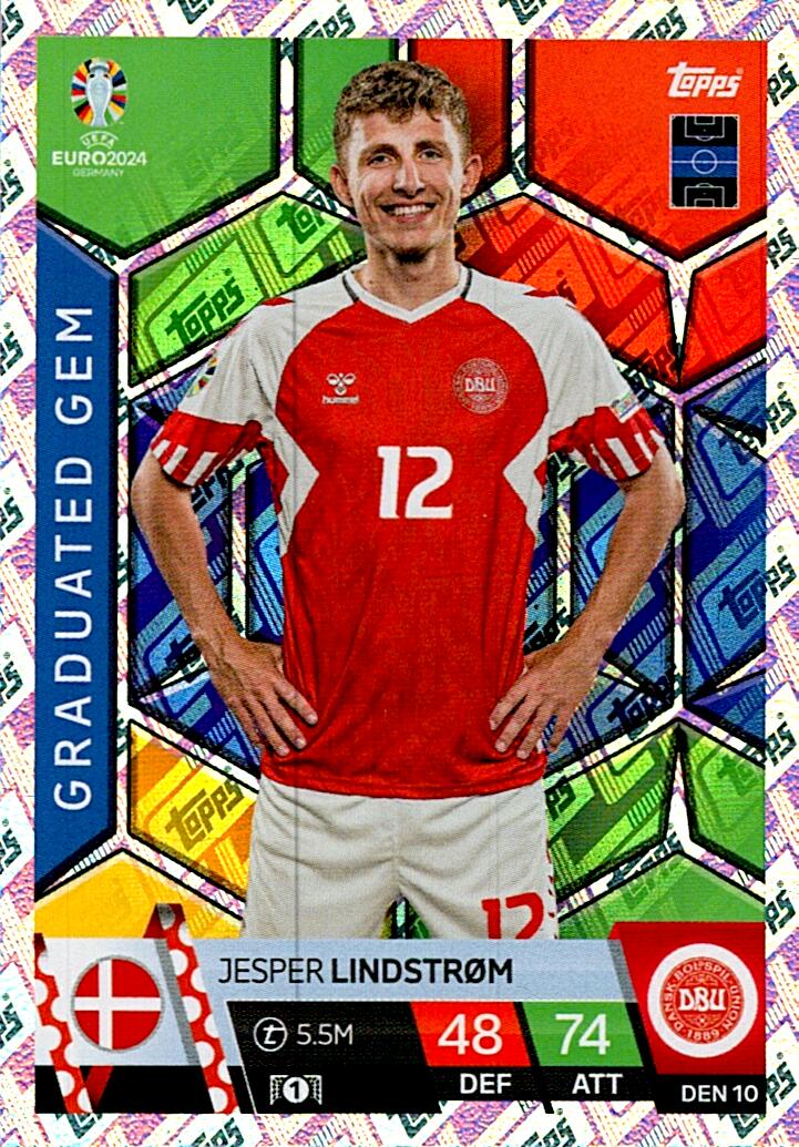 TOPPS MATCH ATTAX UEFA EURO 2024 JESPER LINDSTROM DINAMARCA NºDEN10 GRADUATED GEM
