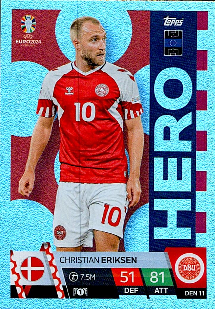 TOPPS MATCH ATTAX UEFA EURO 2024 CHRISTIAN ERIKSEN DINAMARCA NºDEN11 HERO
